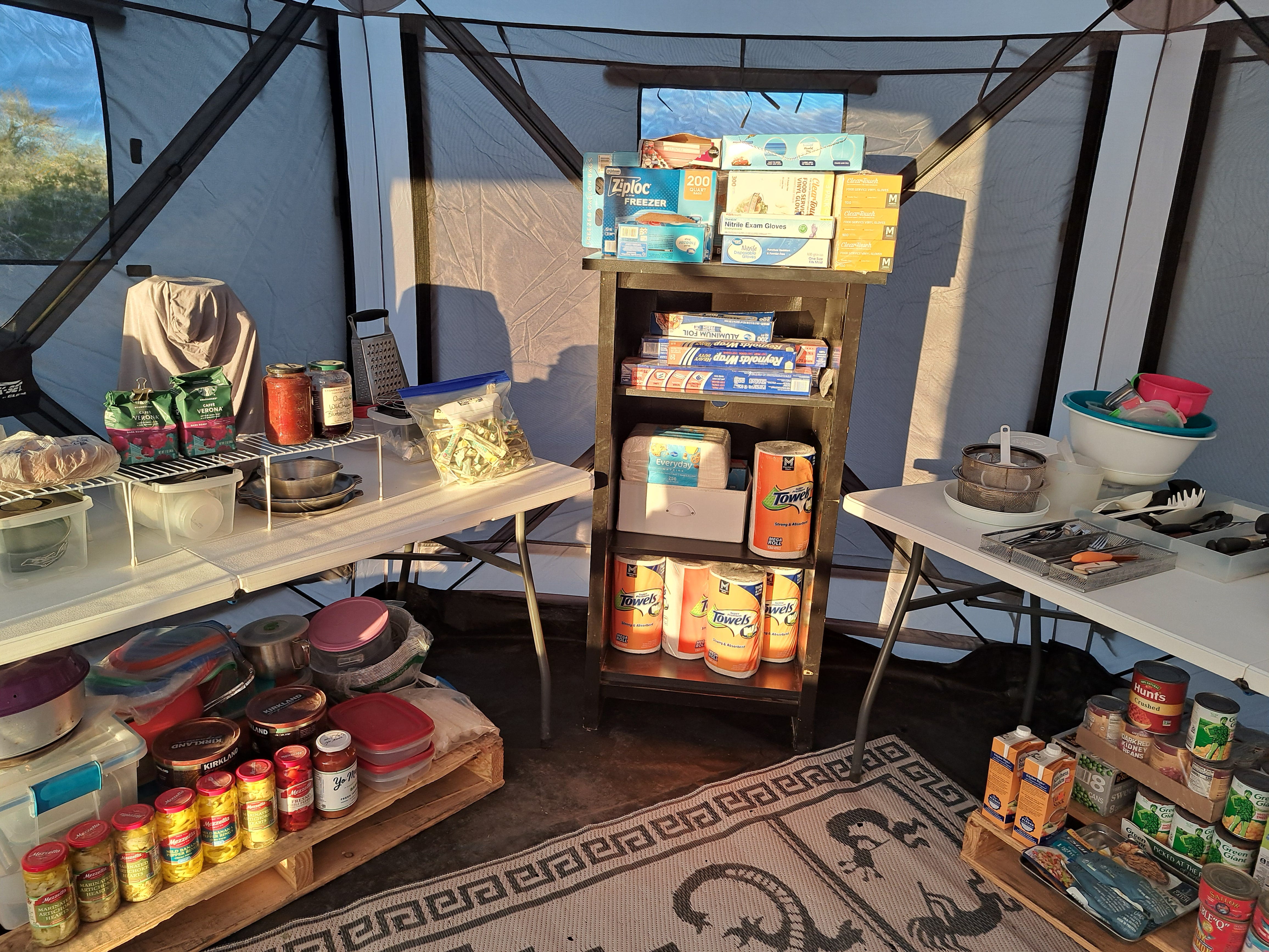 Your last sentence says a lot. No such thing as perfection is this world, as long as there’s growth and recognition of the beauty of what each brings, and what the unit of two have to share. The photos are awesome. The organization of supplies is amazing! A meditation tent? That is certainly the creme de la creme! And I thank you, as an avid meditation practitioner myself, for realizing and appreciating the value of that extra sacred space in the midst of a desert chaos.