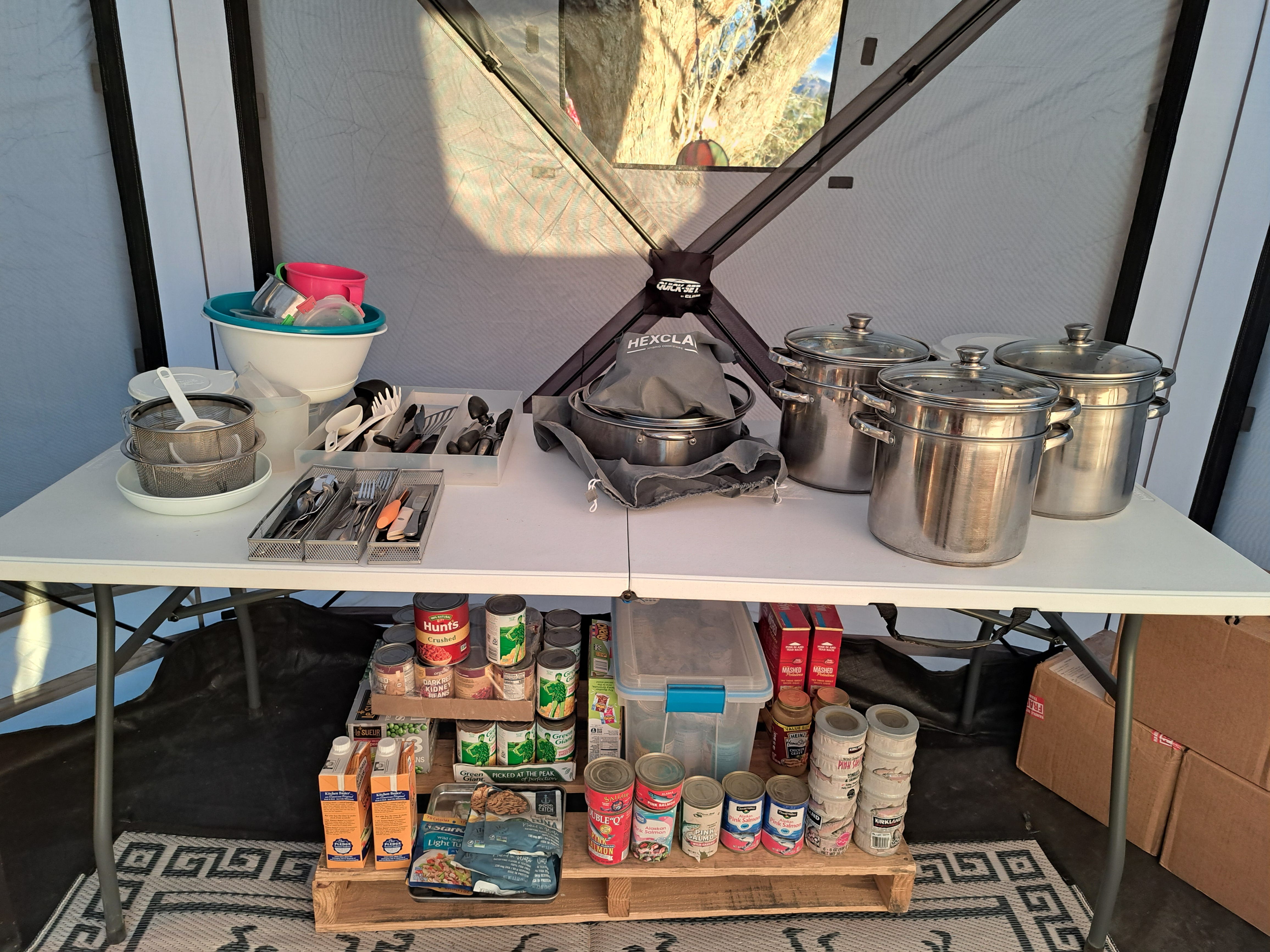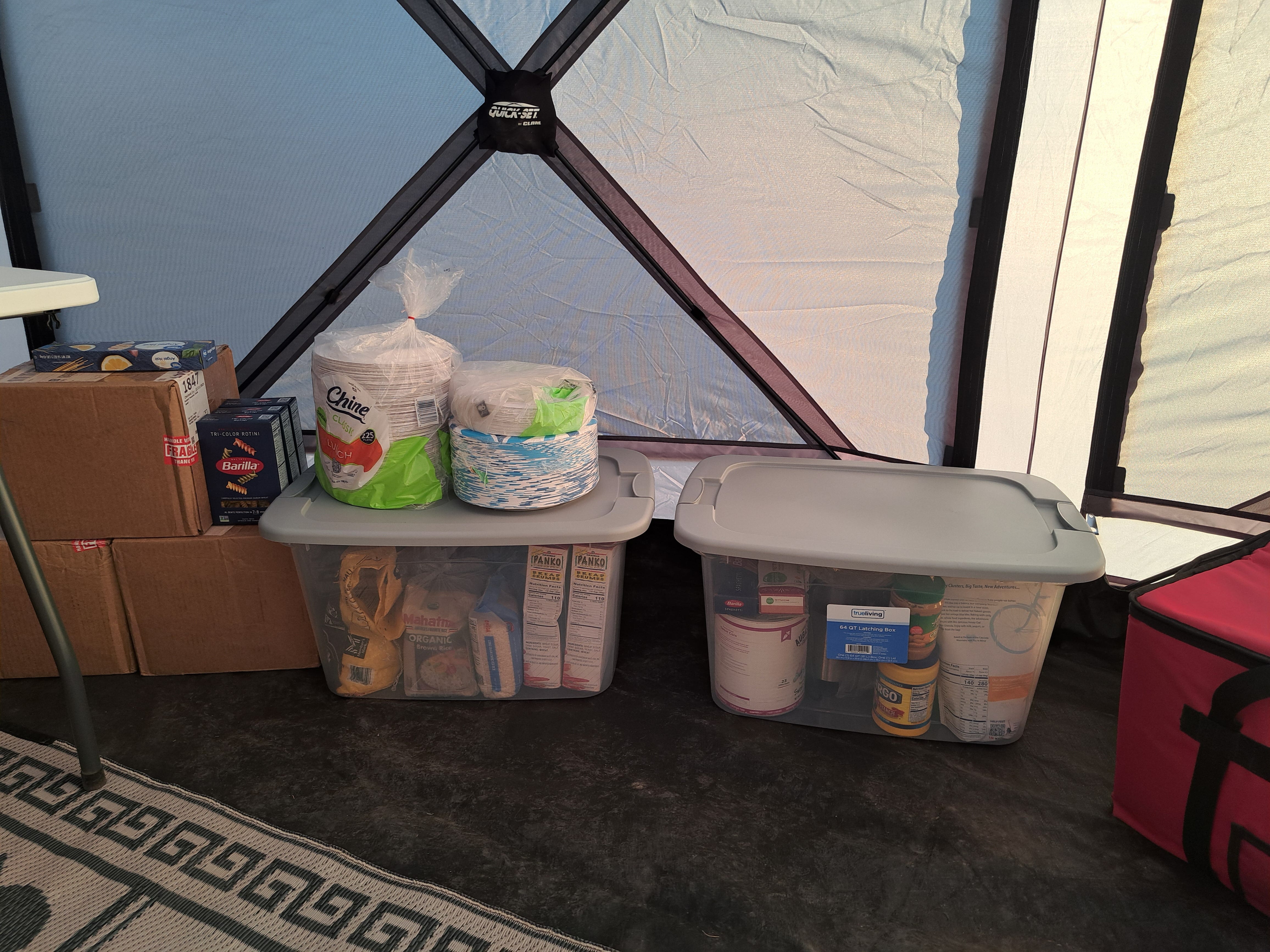 The tent also contained cases of food. Many cases of food.